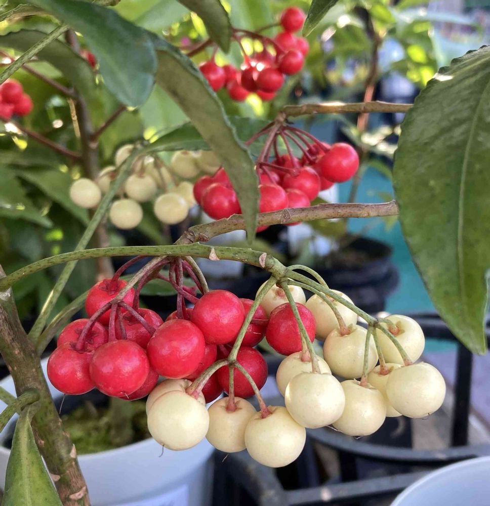アカミマンリョウさんと、シロミマンリョウさんの実がいっぱい成っていました🔴⚪️