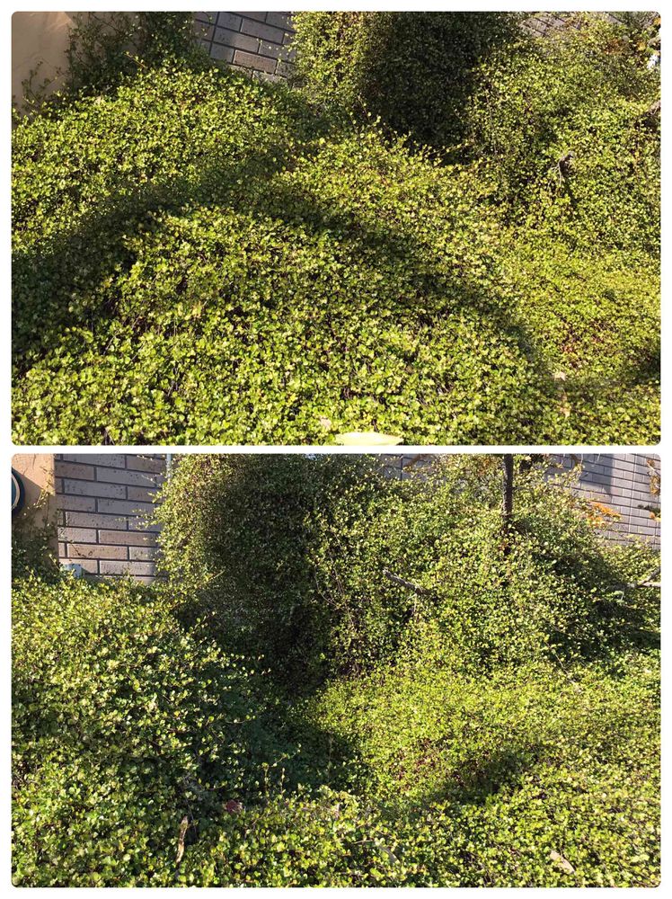 ワイヤープランツですね。かつて千葉の単身赴任先で、放置された植栽から道路に溢れ出しているワイヤープランツを投稿した事がありましたがそれ以上ですね。雑草対策として管理しているのならいいのですが。