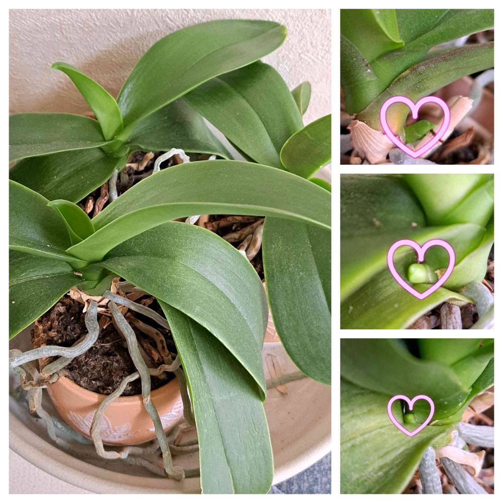 隣の胡蝶蘭にお邪魔してる根っこもあるよ😃