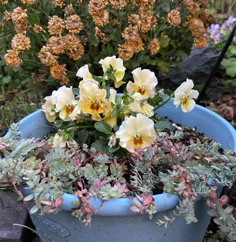 アンティークな色調のビオラさんは、くーちゃんのお庭🌿にピッタリですよね(//∇//)🎶