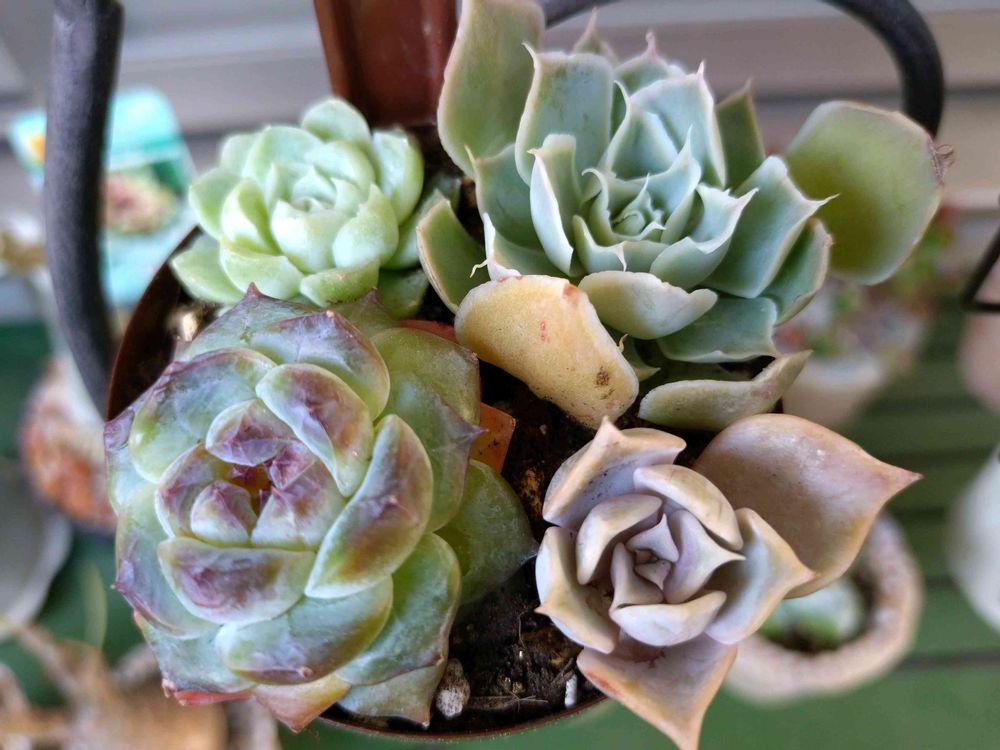 ②お一人様だったリラシナ錦とシムランスをレードルに植え替えました。①のヒューミリスと先日もらったアイスグレープも一緒に🏘