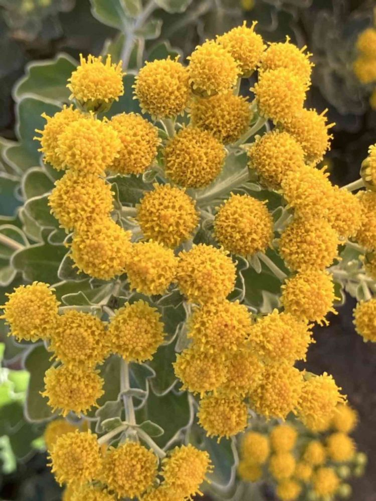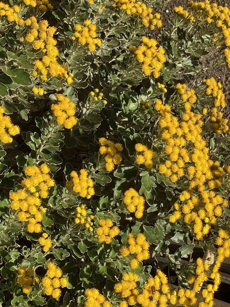 花は花弁が無くポンポンとした丸い🟡黄色の花が特徴的で、可愛いくてどこのイソギクも群生してましたね😊