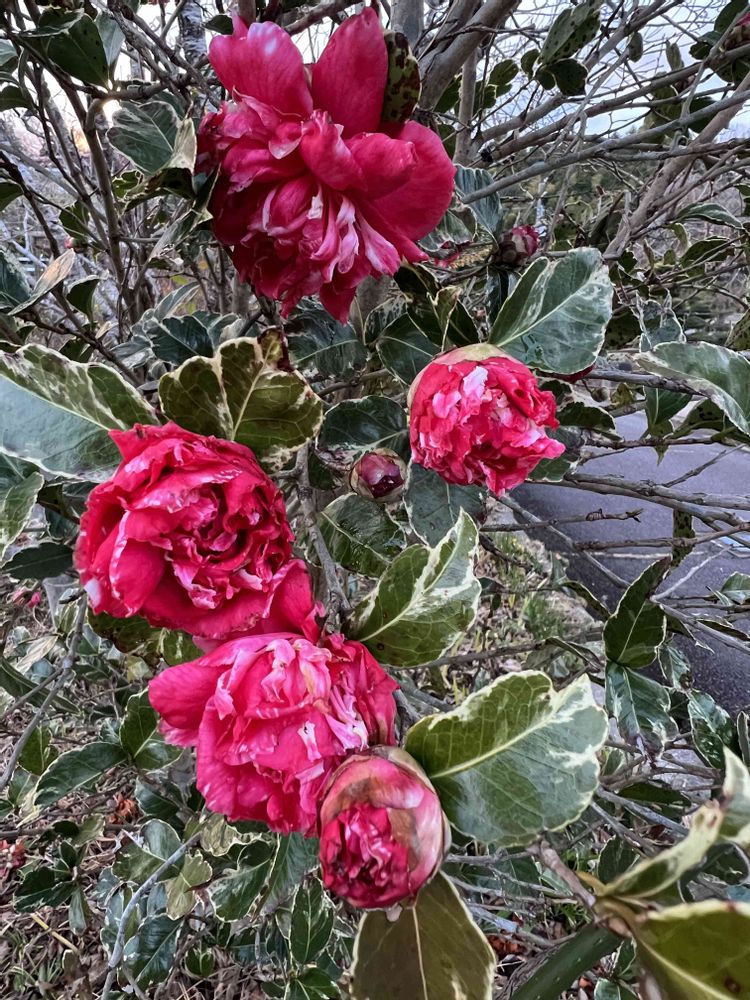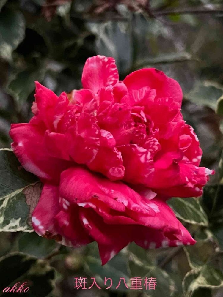 ひみつのアッコちゃんさんの椿 マーガレットデービス,早咲き斑入り八重椿,花も葉も斑入りの椿の投稿画像