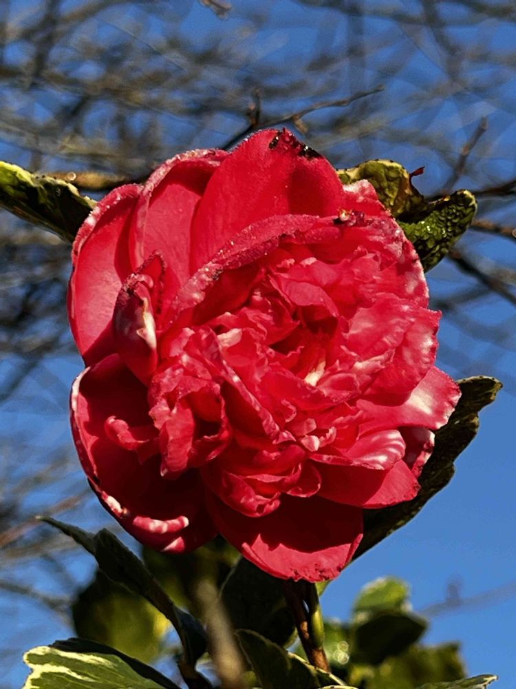 椿 マーガレットデービス,早咲き斑入り八重椿,花も葉も斑入りの椿の投稿画像