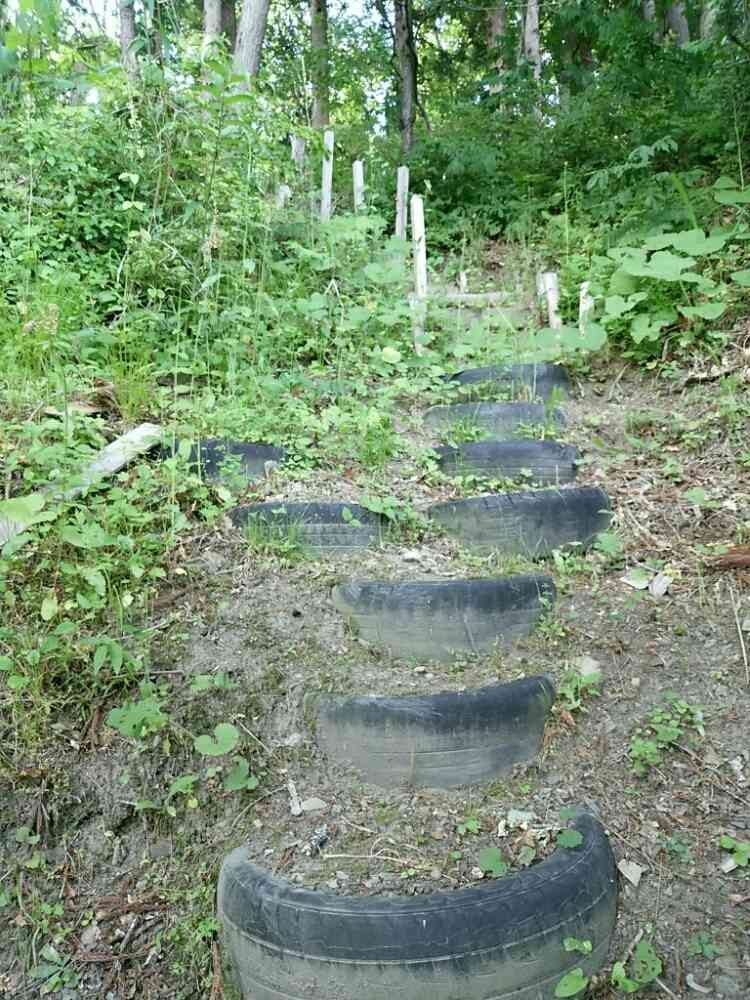 裏の山へと続く階段