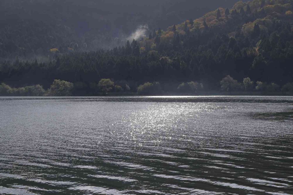 行ったときは、雨上がりで、朝日が湖面をキラキラと輝かせていました。