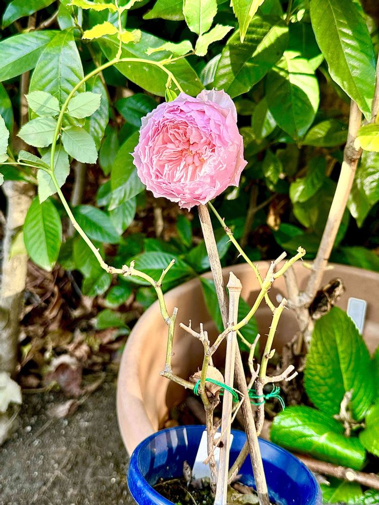 【美咲】花弁の枚数が凄い!美咲はこの時期でも咲いてくれます。花枝が細過ぎるので花を固定。