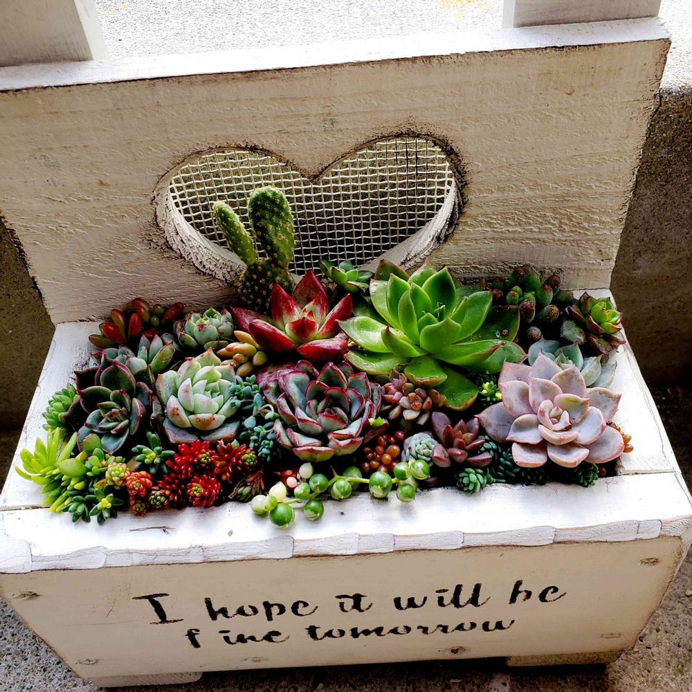木箱の鉢に 可゛愛゛い゛ぃ゛い゛多肉ちゃんの寄せ植え ステキ😍