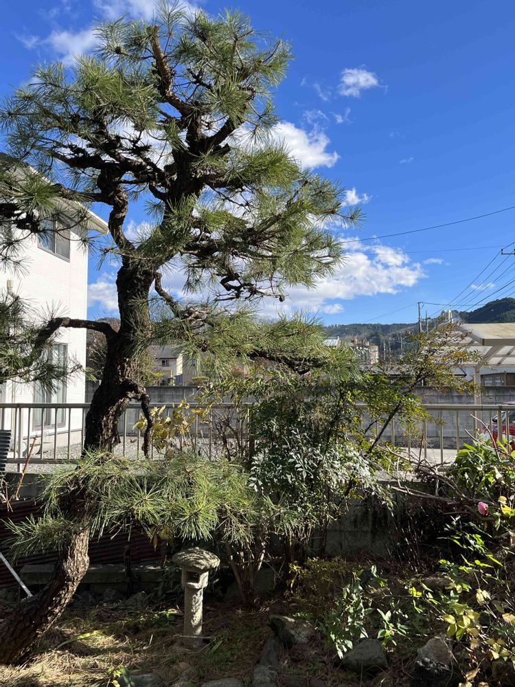 続投🌳🙇♂️場所は、中庭…です。植木屋さんが、「松の木は悲鳴上げてたね😗」ですって💦 『ごめんね、松の木さん』…母と約束していた庭の剪定、していただきました。松の木が青い空に映えます🌳