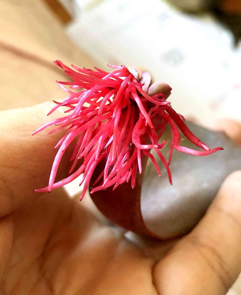 なになに👀紅生姜みたい。根っこがこんな色になるんですね。
