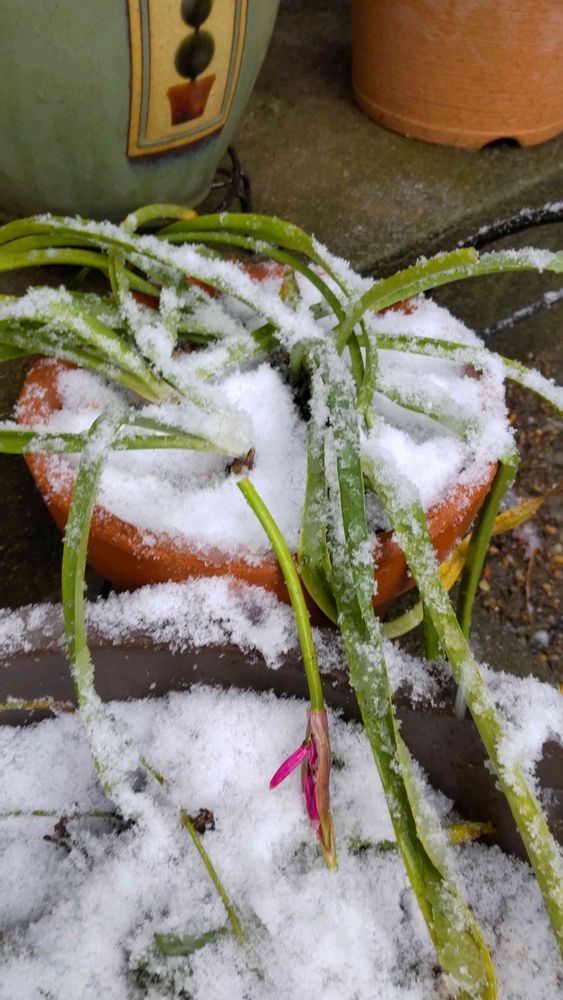 雪が降る時期に花芽が付くので、花が咲かないまま終わってしまい、春になるとネリネがあったことを忘れてしまう😅ということを数年繰り返し。