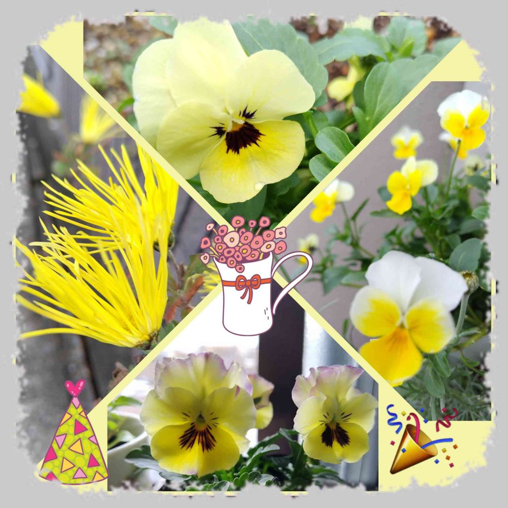 おじさん顔のビオラ・パンジーも黄色いお花は、とても可愛いおじさんネ✨