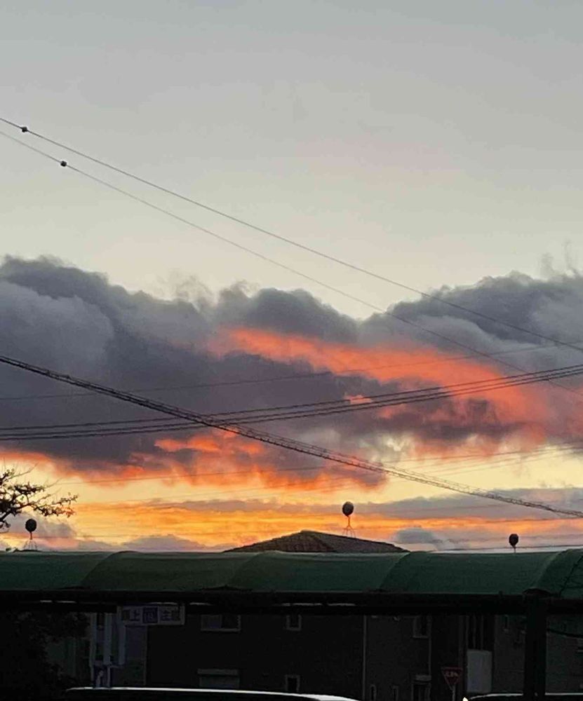 買い物終わって見たら西の空夕陽で真っ赤…火事見たい🔥