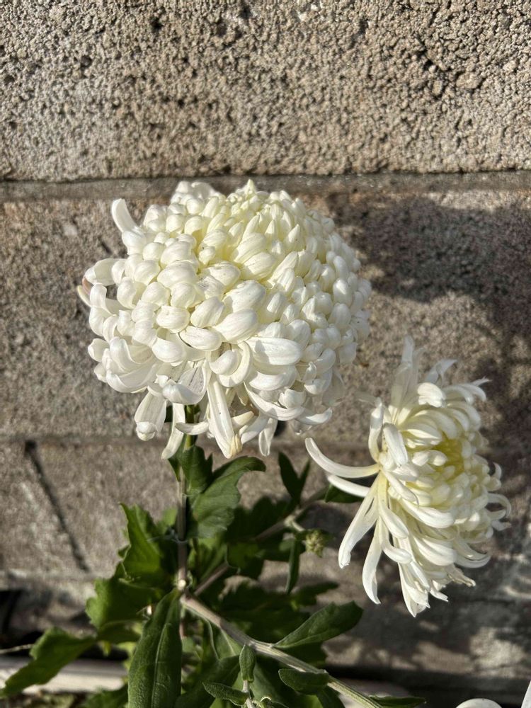 お隣さんの菊が朝日を浴びて綺麗
