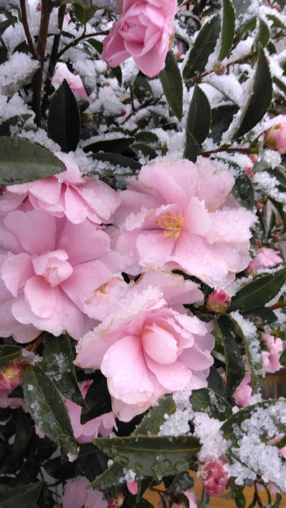 山茶花の花には雪に塗れて〜でも凄く風情がありますね〜きれい🤩💞