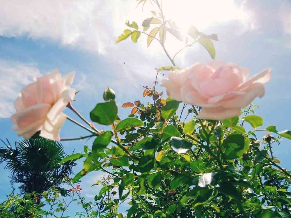 おはようございます🎵綺麗な空と綺麗な薔薇で元気でます✨