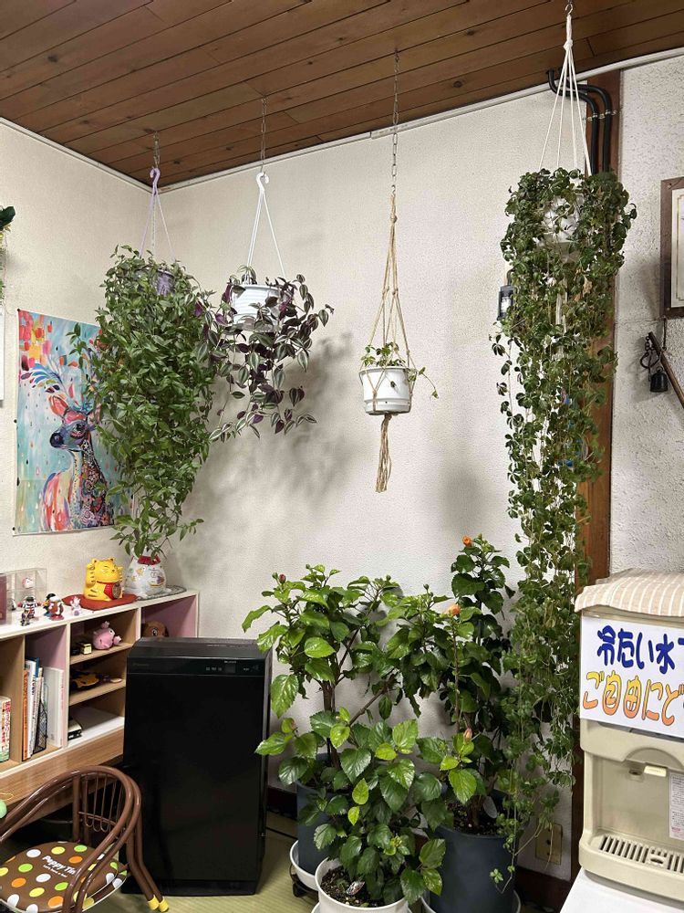 お店にグリーンがあると心地良い雰囲気に変わるので邪魔にならないように置いてるつもりですが……植物は勝手に暴れます🤣