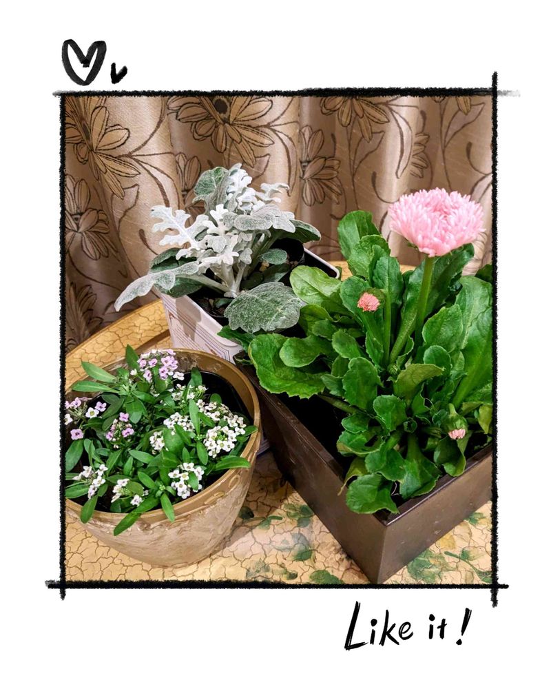 以前に作った寄せ植えで枯れてしまって空いてしまった隙間に植えようと買ってきた 白妙菊 チロリアンデージー アリッサム 二日目もこちらの部屋にご滞在