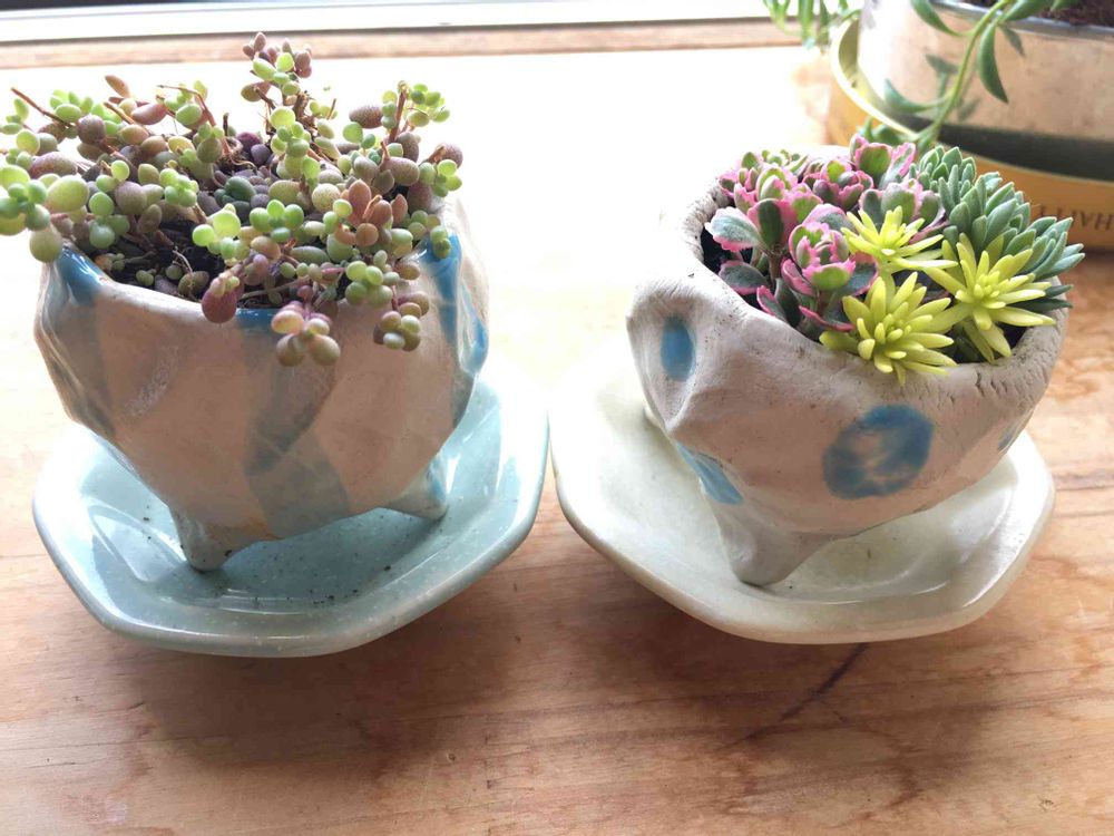 外のセダム鉢の蒸れ防止も兼ねて、切り取ったトリカラー他を、調子に乗って、もう一つの鉢にも寄せ寄せ。
