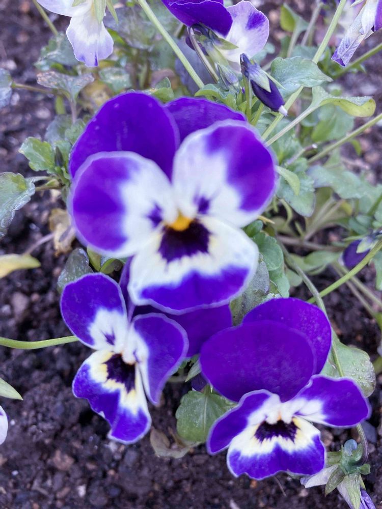 おじさん顔ビオラ🥸続きです😅雨☔の朝 少し泣き顔に見えませんか?
