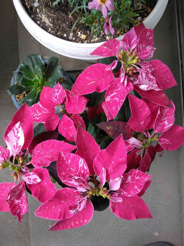 *赤色部分が強くなり、ようやく可愛くなってきたプリンセチア🤗💓(霜降り肉に見えてしまい😂)