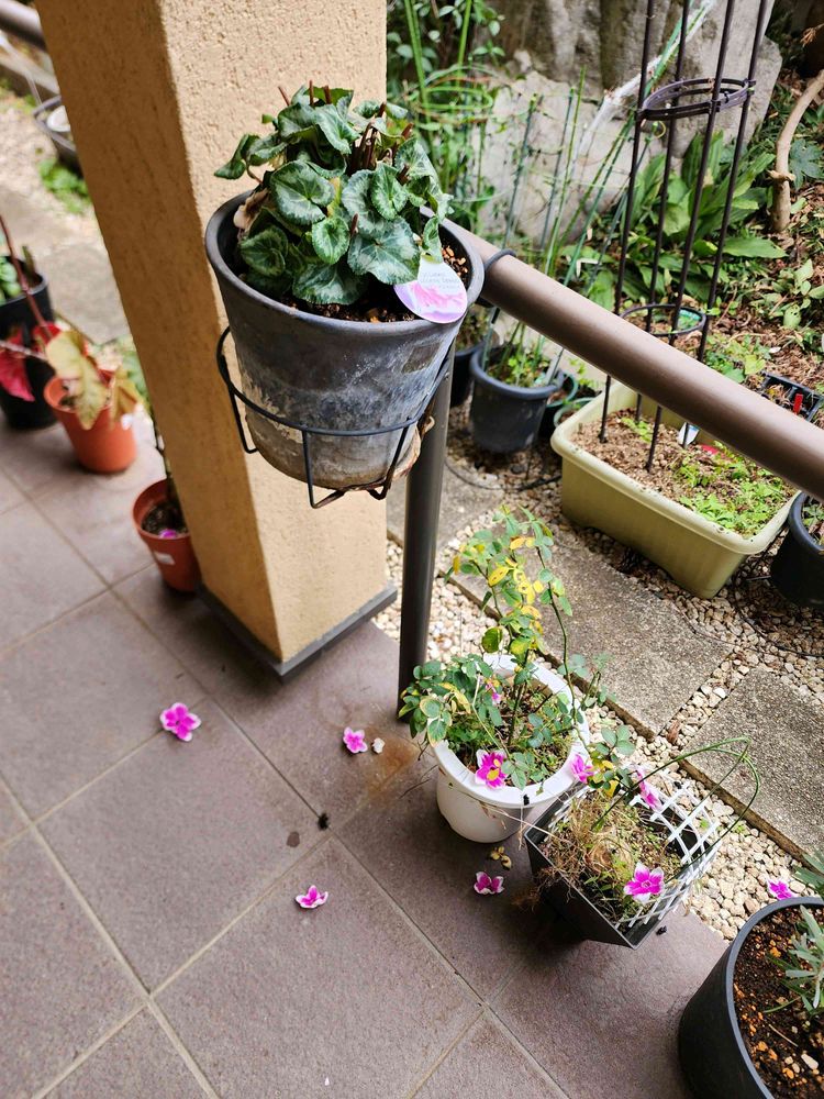 朝起きたら玄関前のシクラメンの花が全部散らされていた…😭