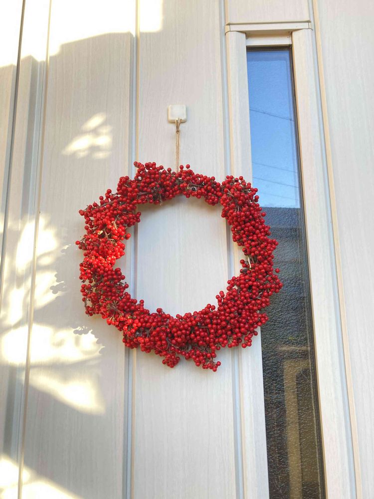 お向かいさんに頂いたクロガネモチの枝を使ってリースに。