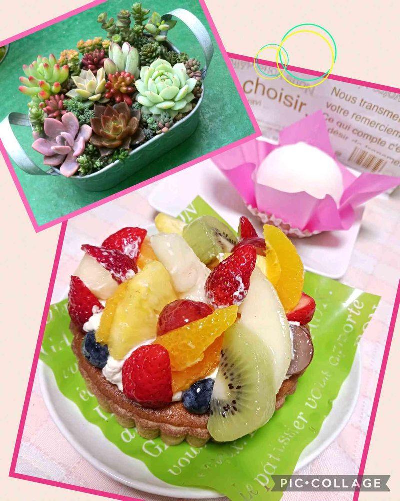 多肉も、🍰も美味しそう😊。