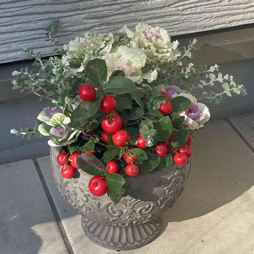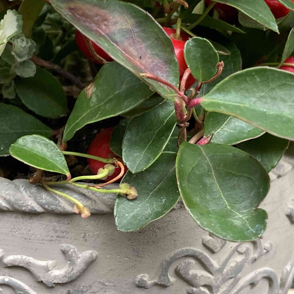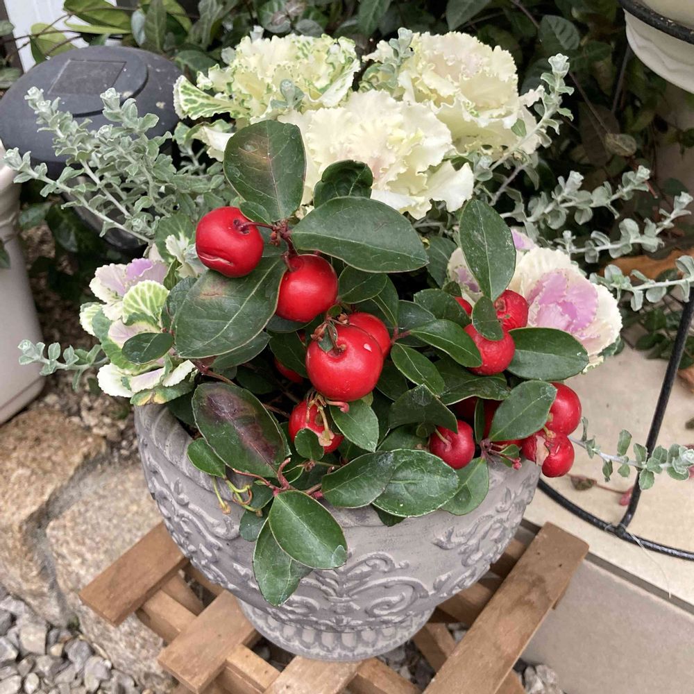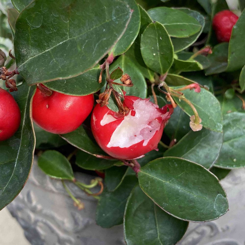 せっかく可愛らしくできた寄植えのチェッカーベリーが食べられてる😣