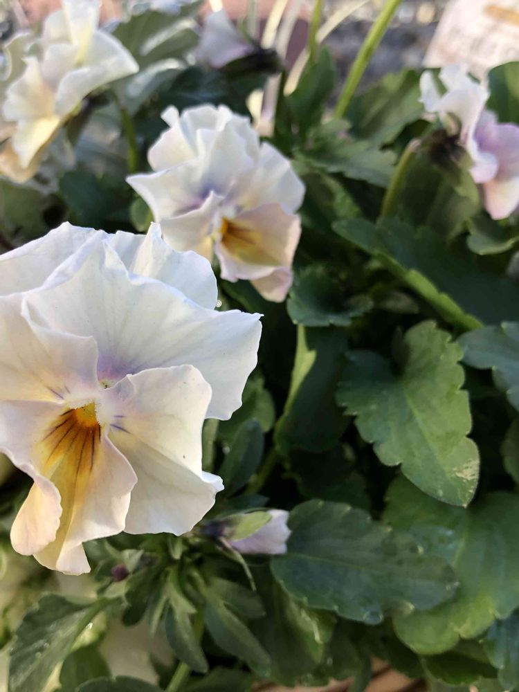 葉牡丹の色違いを使った寄せ植えです。花日和さんのフリル咲きのパンジーとバラ咲きジュリアンを合わせて優しい色合いにしてみました😊 パンジーとジュリアンのフリフリがめっちゃ可愛いっす😍