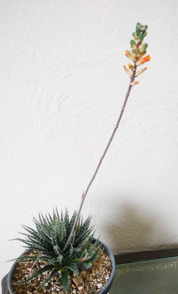 ハオルチアのように見えるアロエに、小さなお花が咲きました~💛