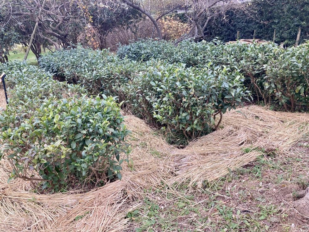「チャノキ」の手元に藁を敷いて本格的に冬支度。