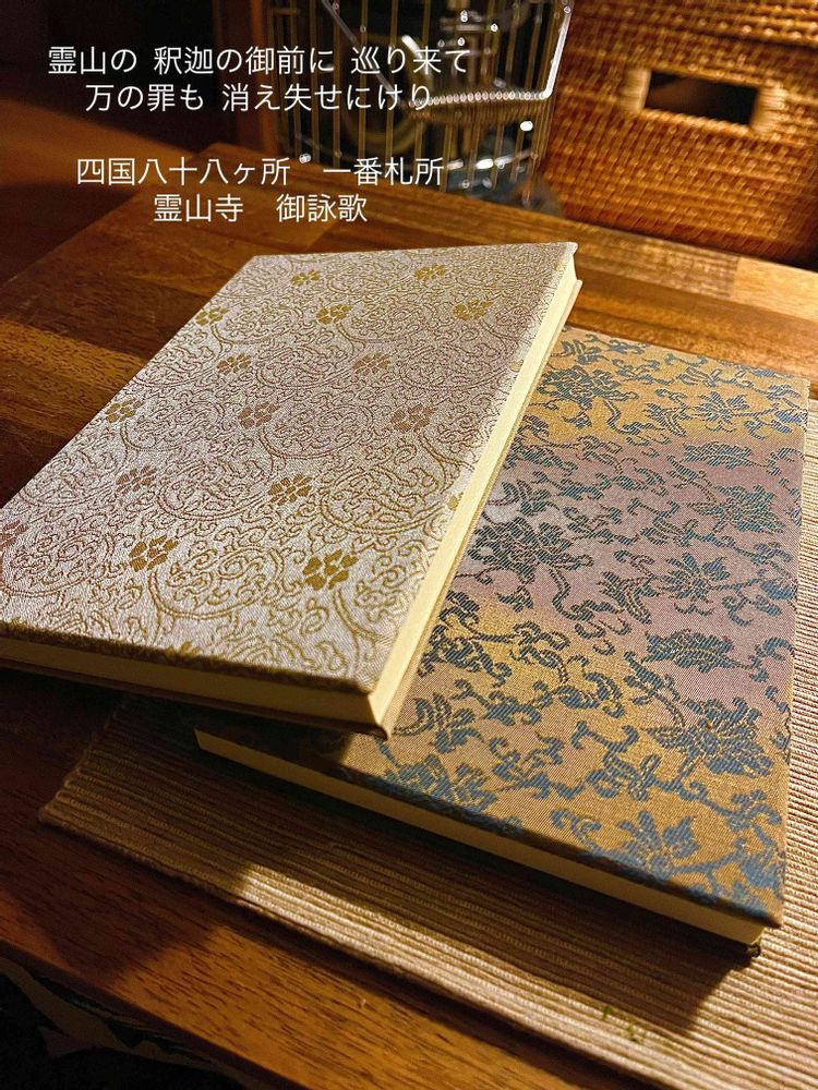 京都の古い文房具屋さん「尚雅堂」。そこの御朱印帳「唐花」と「定家」です。どちらも牡丹や蓮花など、様々な植物を合成してモチーフにした文様です。⛩️四国八十八ヶ所はもちろん、色んな神社仏閣を巡りたいです🤗✨