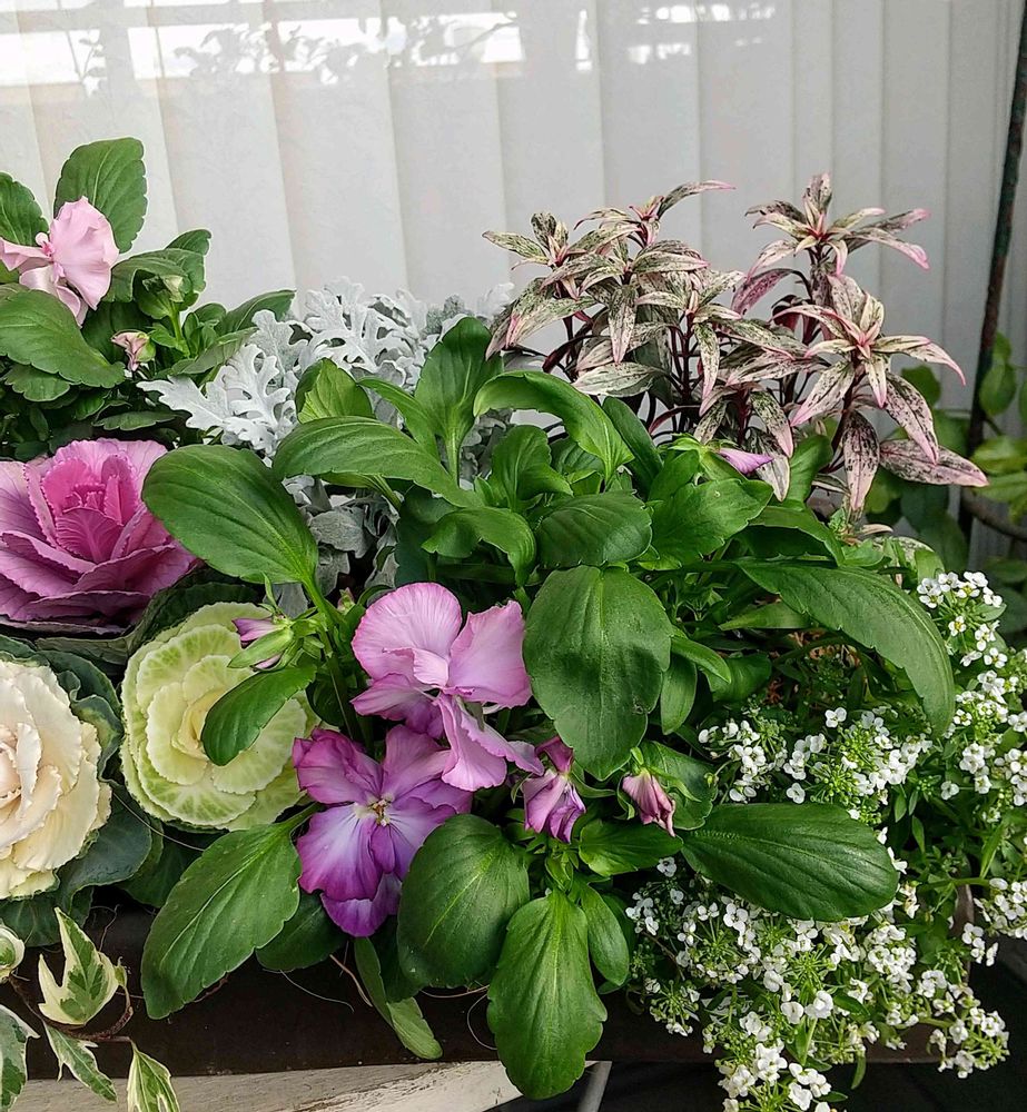 傾斜コンテナを使った寄せ植えです🌿💠🌿💠🌿