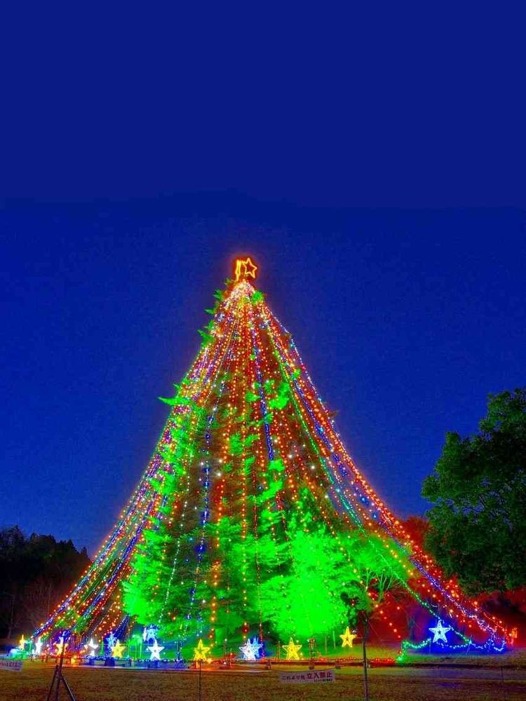 宮ヶ瀬湖畔に自生している樹齢100年以上、高さ約30mもあるモミの木のジャンボクリスマスツリーです。