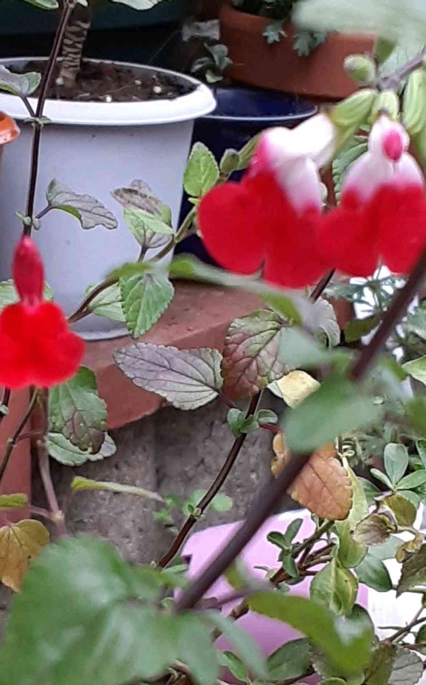 (チェリーセージ)ホットリップの赤い💠花 未だにポツポツ咲いています