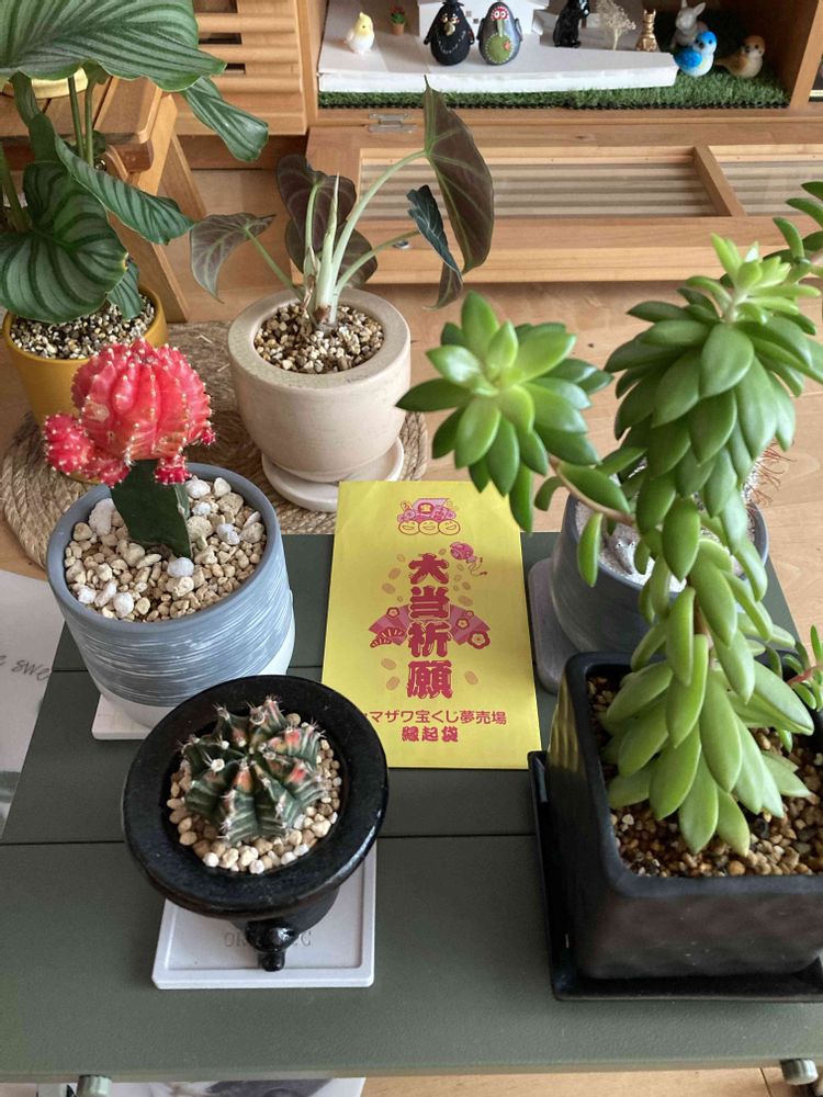 今年の年末ジャンボは植物さん達の所に置いてみました🥰