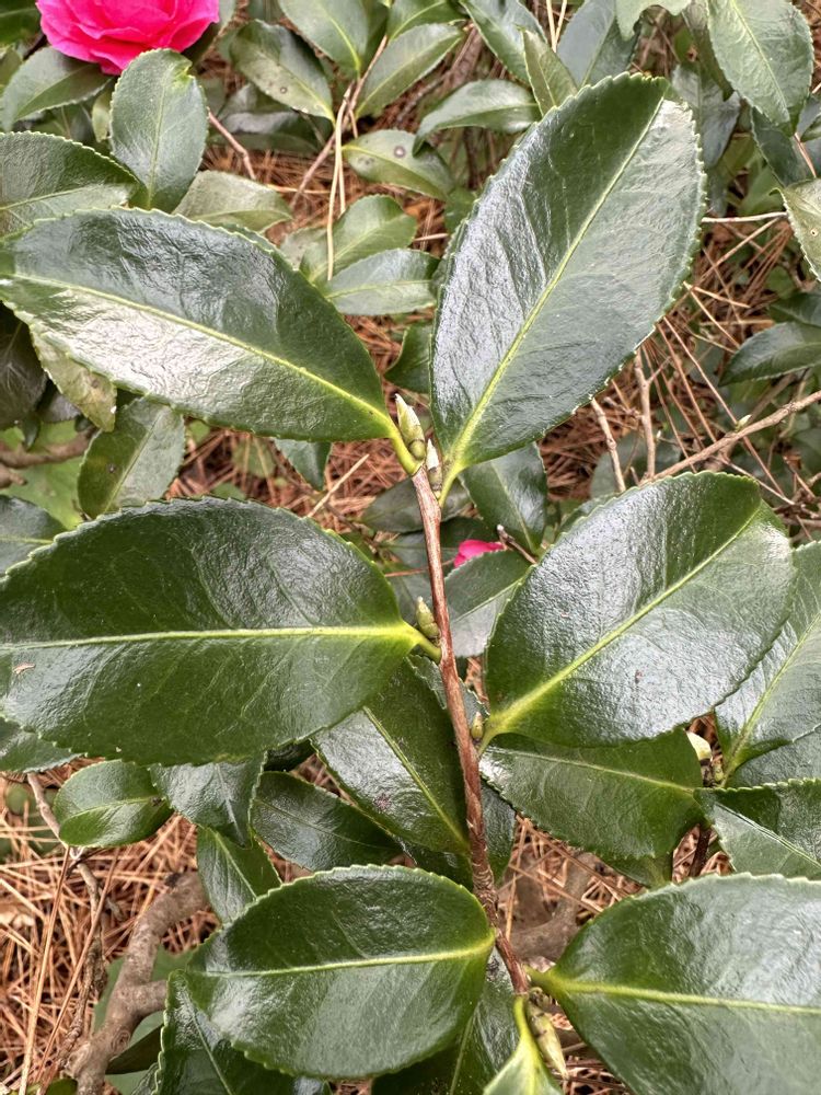 🍃🍀サザンカより厚く大きい 鋸歯は荒いが硬く無い。