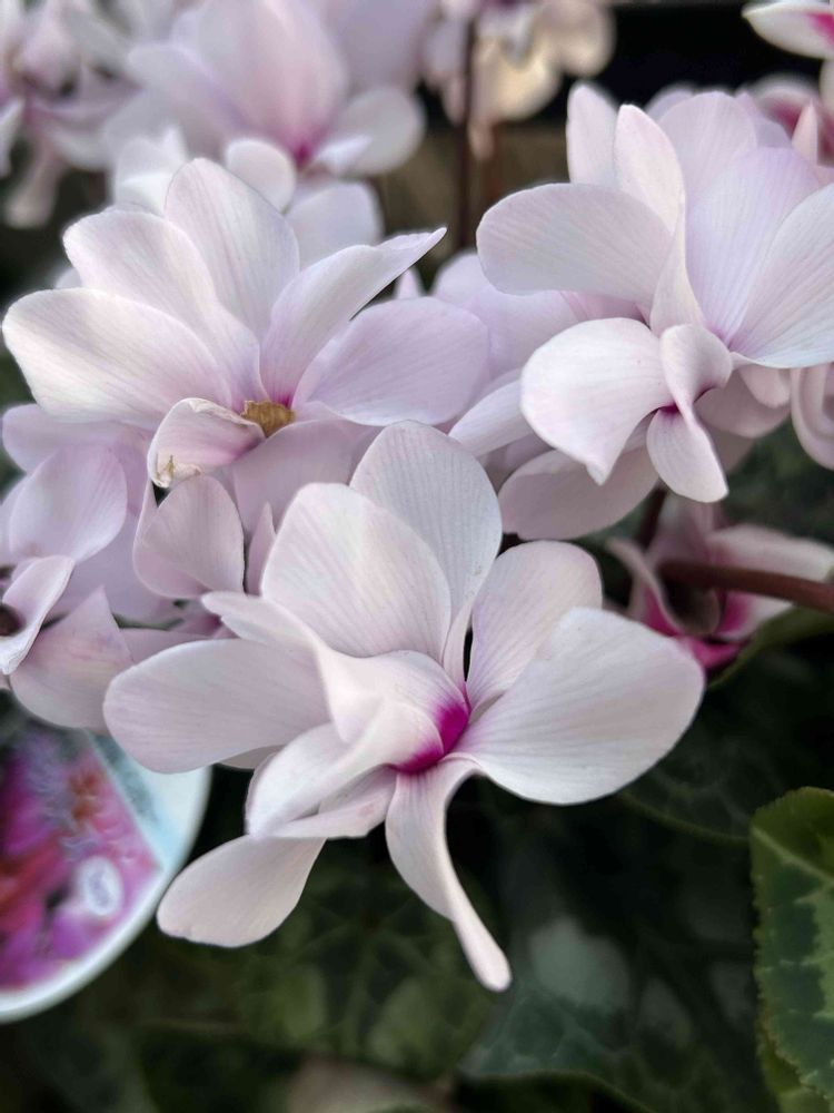 白い八重咲きシクラメン、口紅を塗ってるみたいで可愛いですね〜😍😍😍