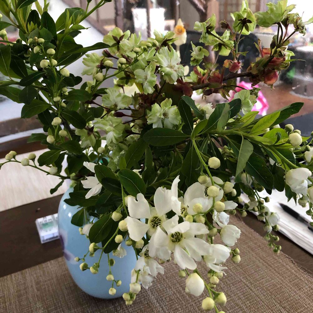 初めて名前を聞いたお花でした。緑の桜に真っ白のお花、素敵でずっとウットリ眺めてました😊