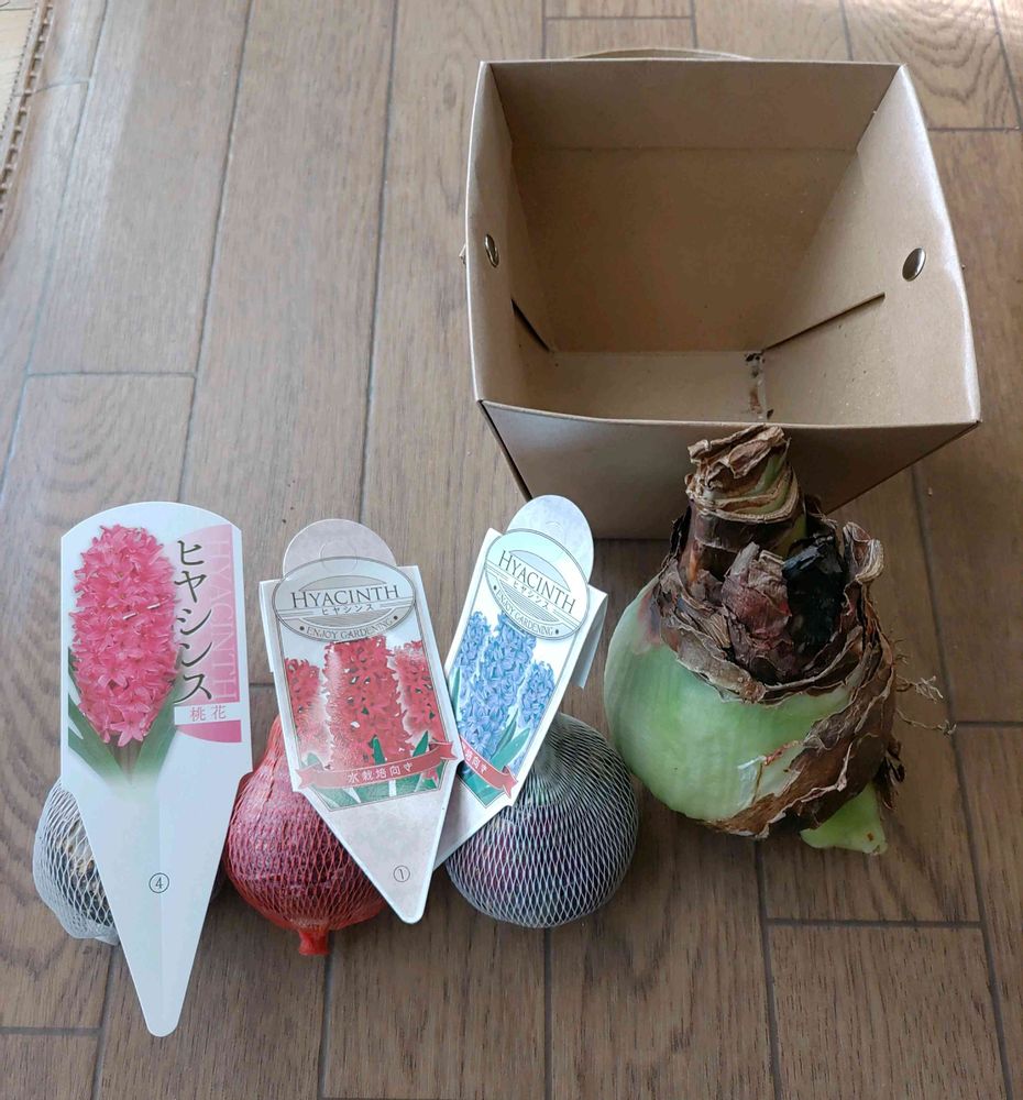 予約注文していたマジックアマリリスのスイートニンフ(ピンク)とヒヤシンスの球根が3球到着。
