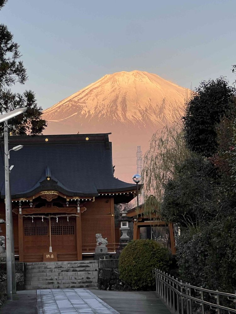 富士山を背負ってるように本殿が建ってる⛩️神社が多いので、今朝は少し赤くなった紅富士が間からも見られました!(◎_◎;)🗻💚