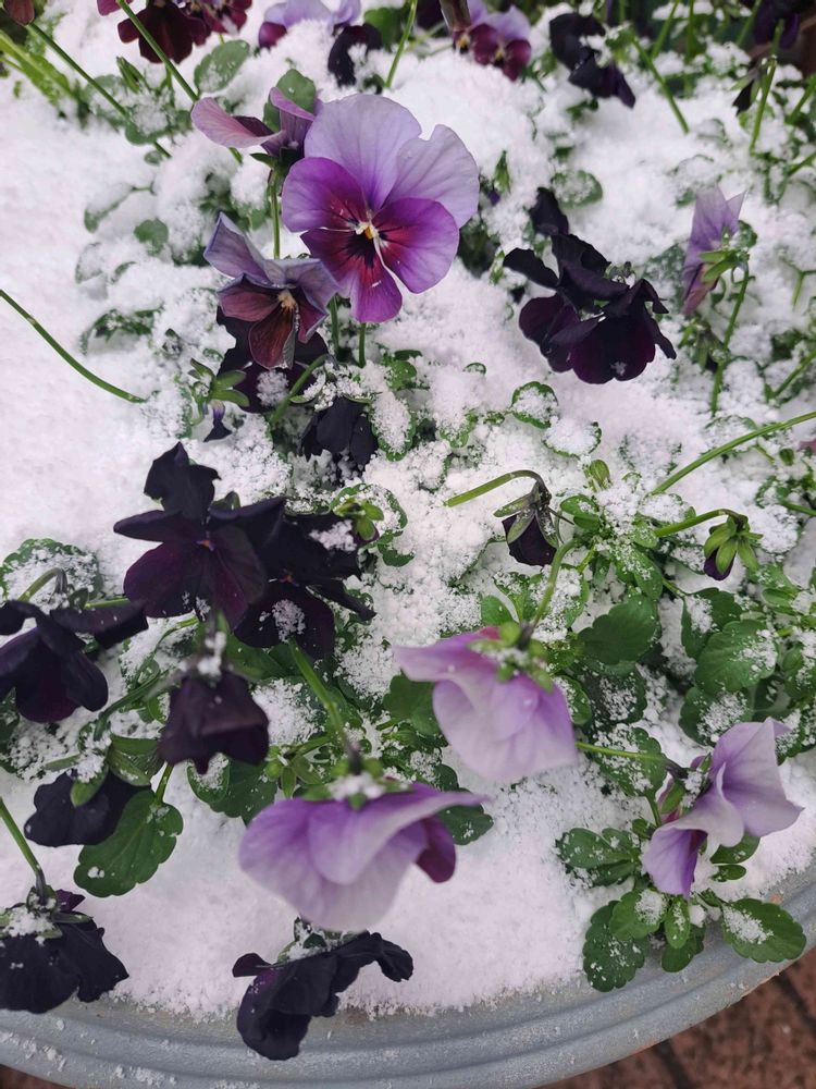 寒そうだけど、ビオラって雪にも似合う気がするんです、、、❄️