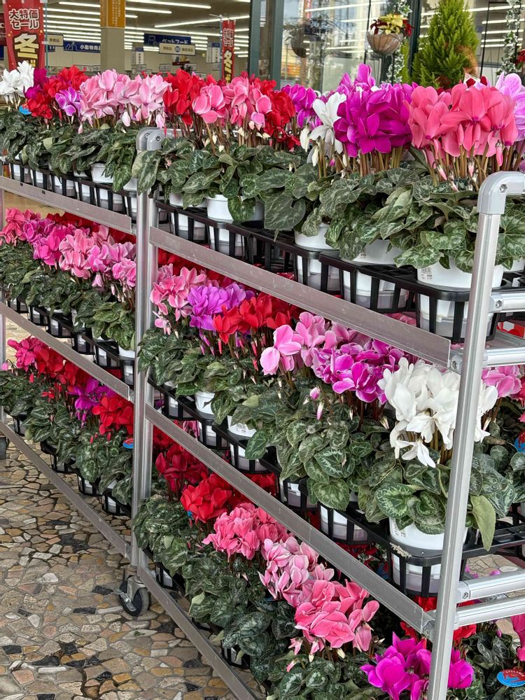 ホームセンターの花コーナーのシクラメン