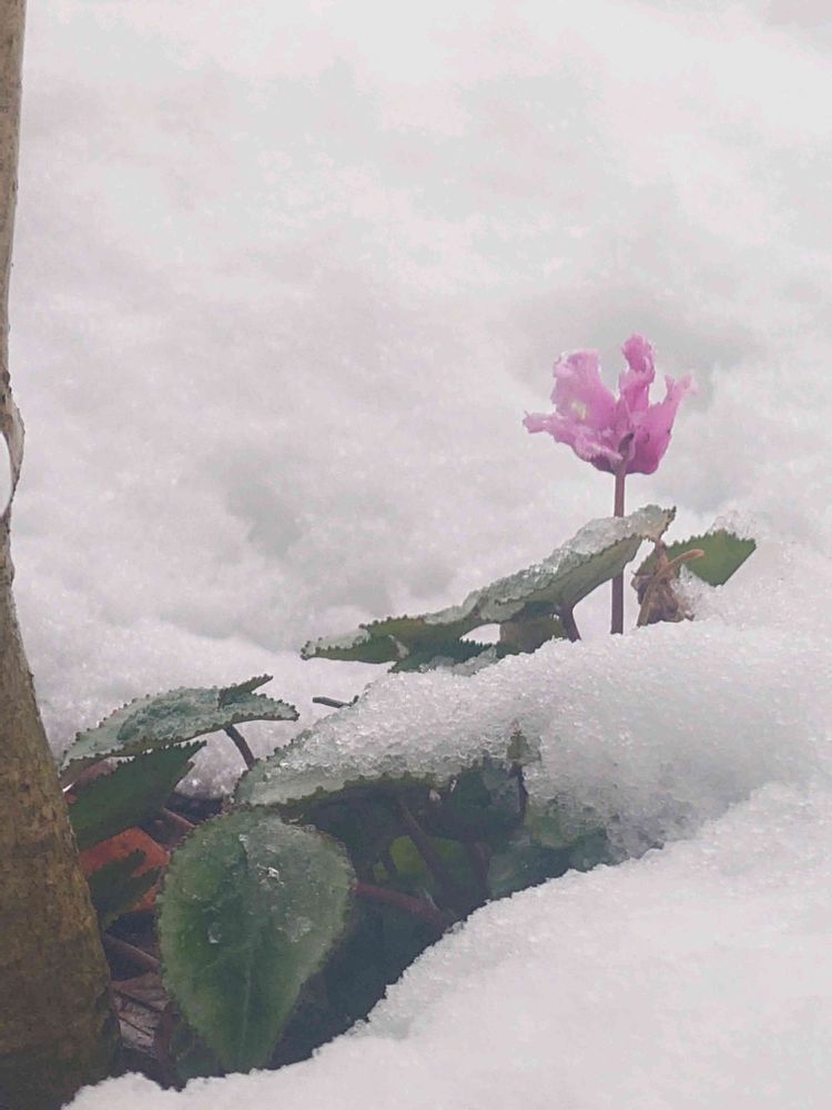 この雪に覆われた中で シクラメンの健気なこと🤗💕