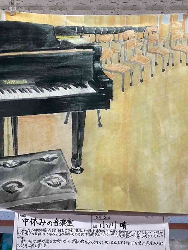 合奏のピアノ伴奏をした時、昼休みに音楽室で練習した時の音楽室を描いたものだそうです♪