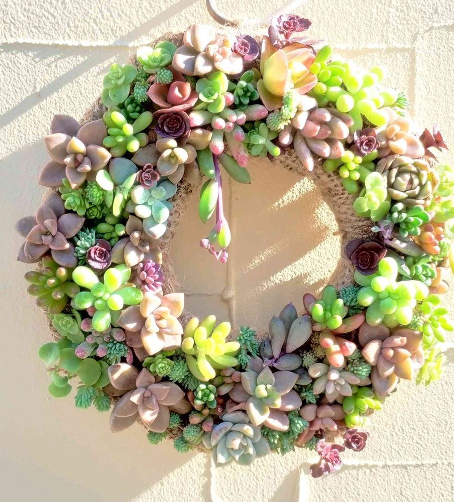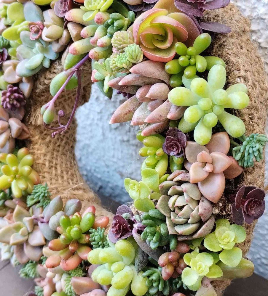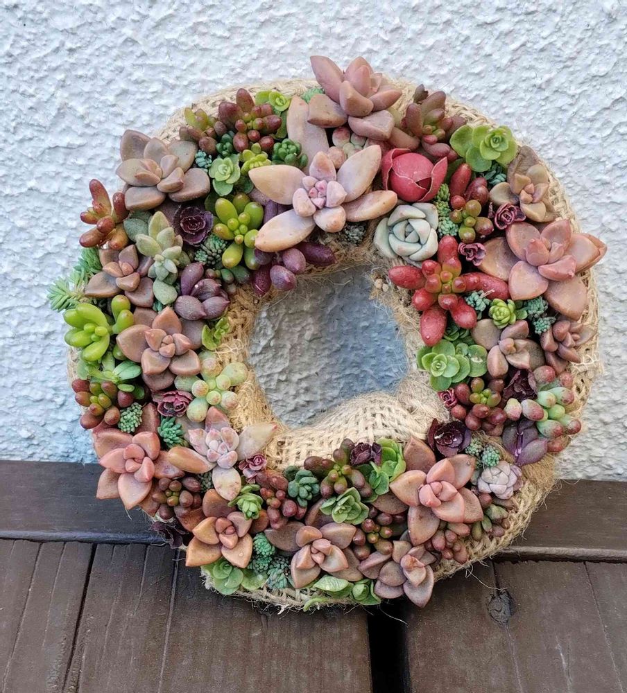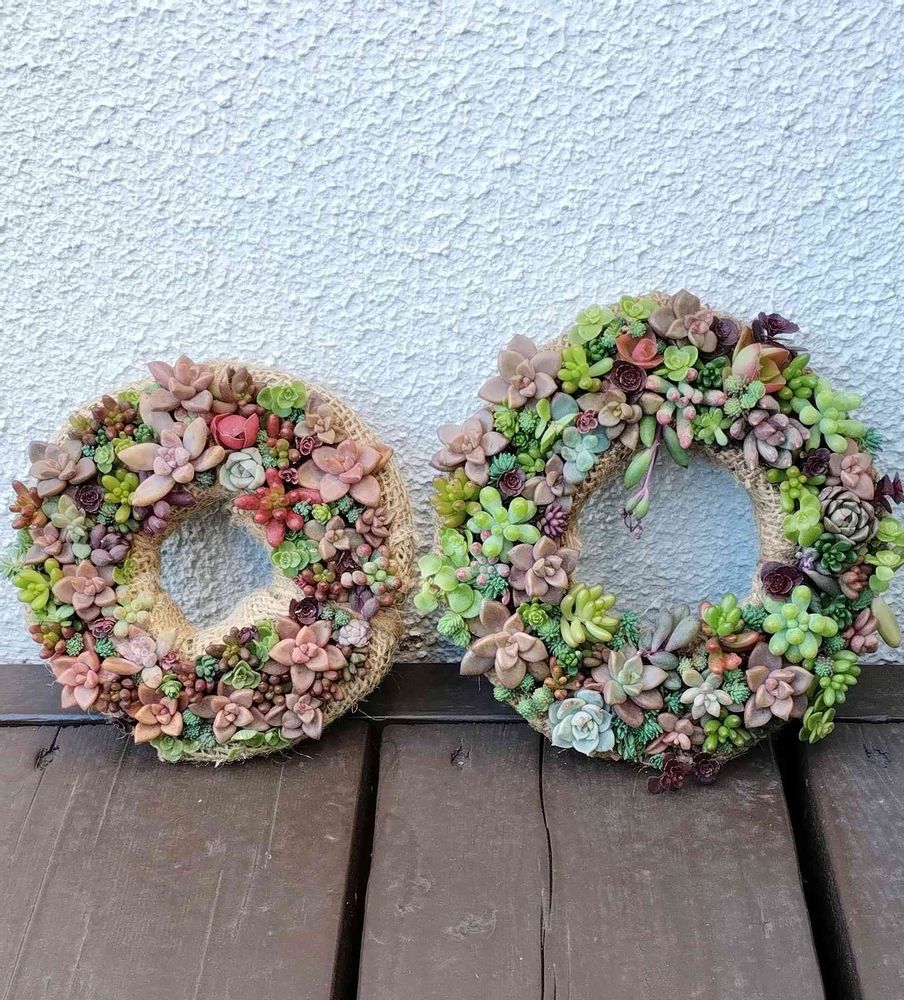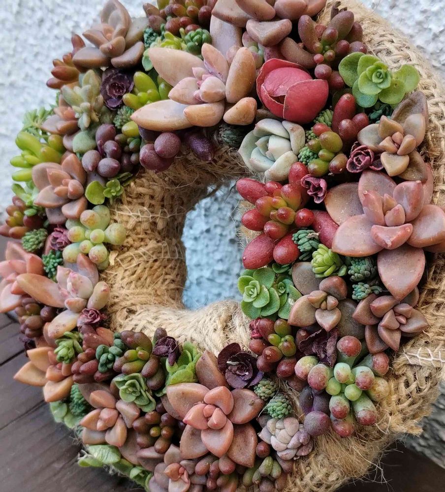 むむさんのリース、多肉ひとつひとつがとても綺麗に入っていて見入ってしまいました😃とても美しいです😍上手く植え込む秘訣があるのでしょうね💕