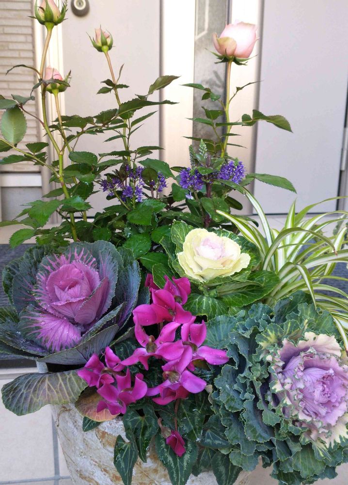 薔薇と葉牡丹の寄せ植え