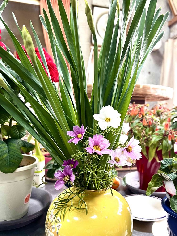 水仙の蕾と秋桜