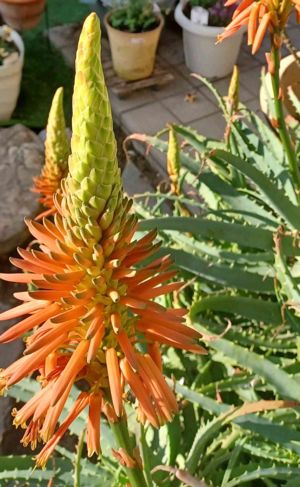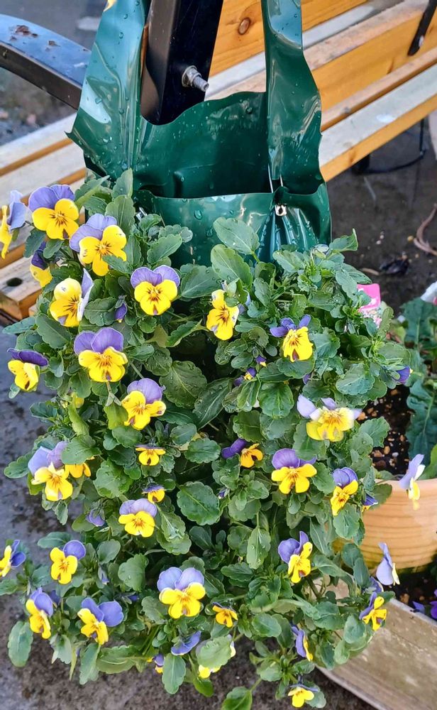 ☝️…ネットで見つけたビニール袋ビオラ🤭→アロエの花→寄せ植え、隙間にチュウリップの球根が入ってますが隙間を空けず上に植えても根っこを避けて出てくるそうです🌱(二階建車両の意味のダブルデッカー😁)